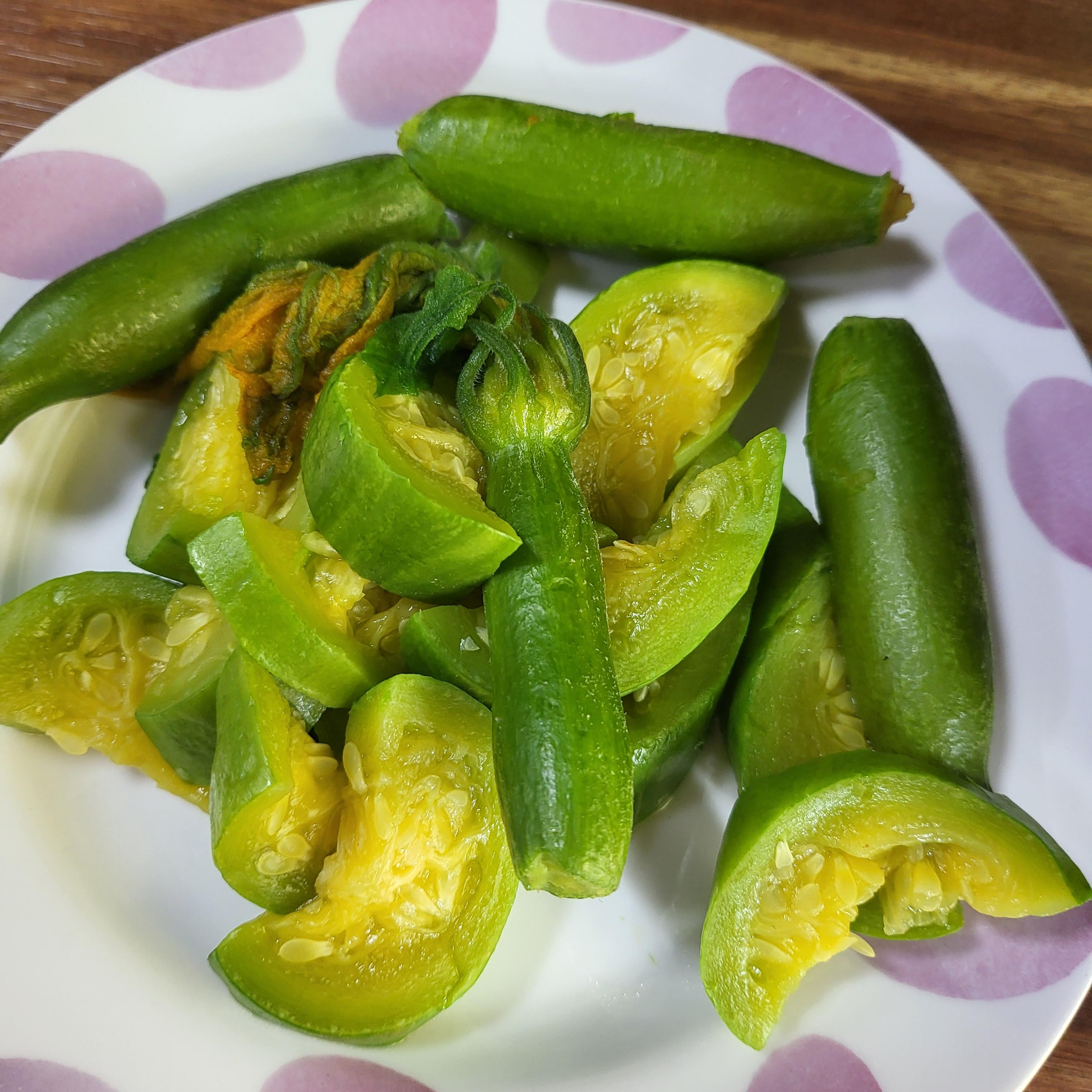 오늘 점심은 지인이 가져다준 애호박이랑, 잎에 달려있는 어린 호박을 호박잎과 함께 쪄서 아들. 며느리랑 맛나게 먹었습니다~~