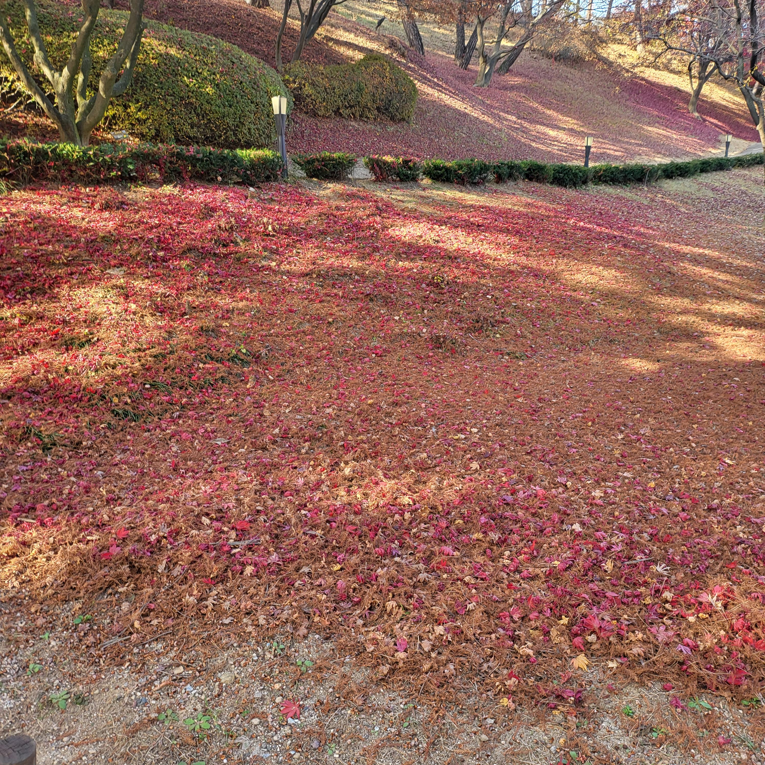 잔디밭을 가을 낙엽으로...