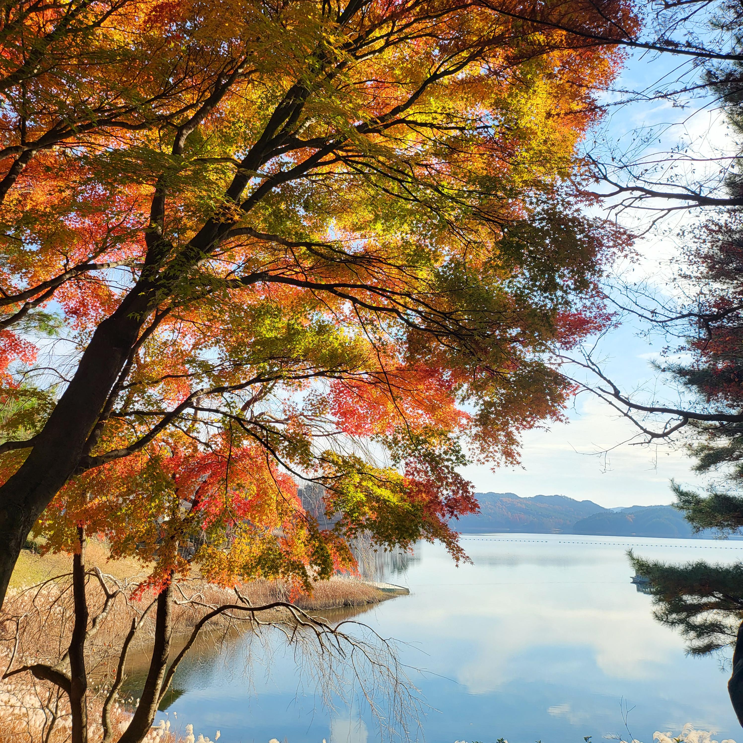 단풍과 맑은 하늘 그리고 호수 같은 물도 너무 이쁘죠~